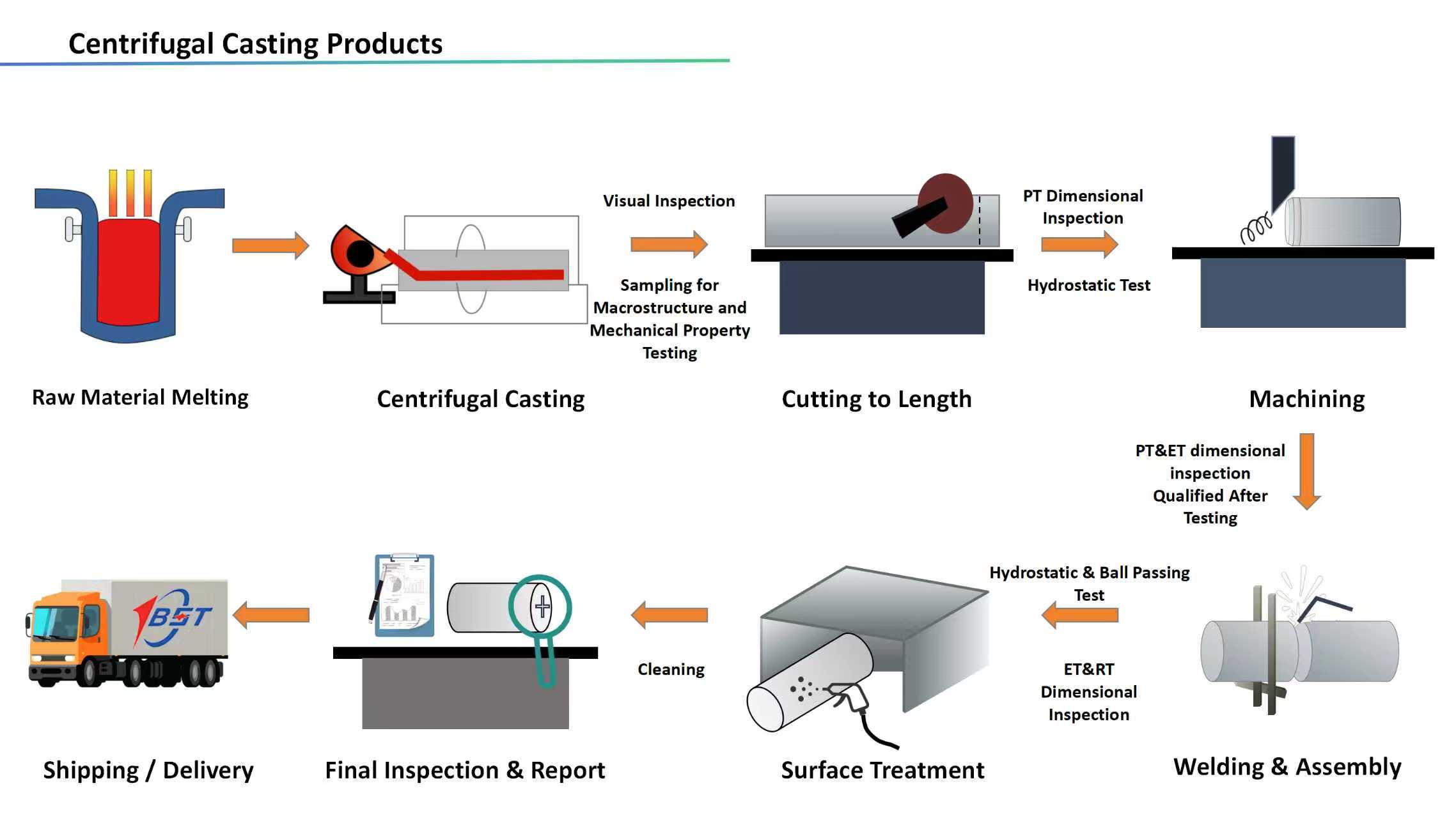 - 10+ large-scale centrifugal casting machines (up to Ø800mm x 6000mm).